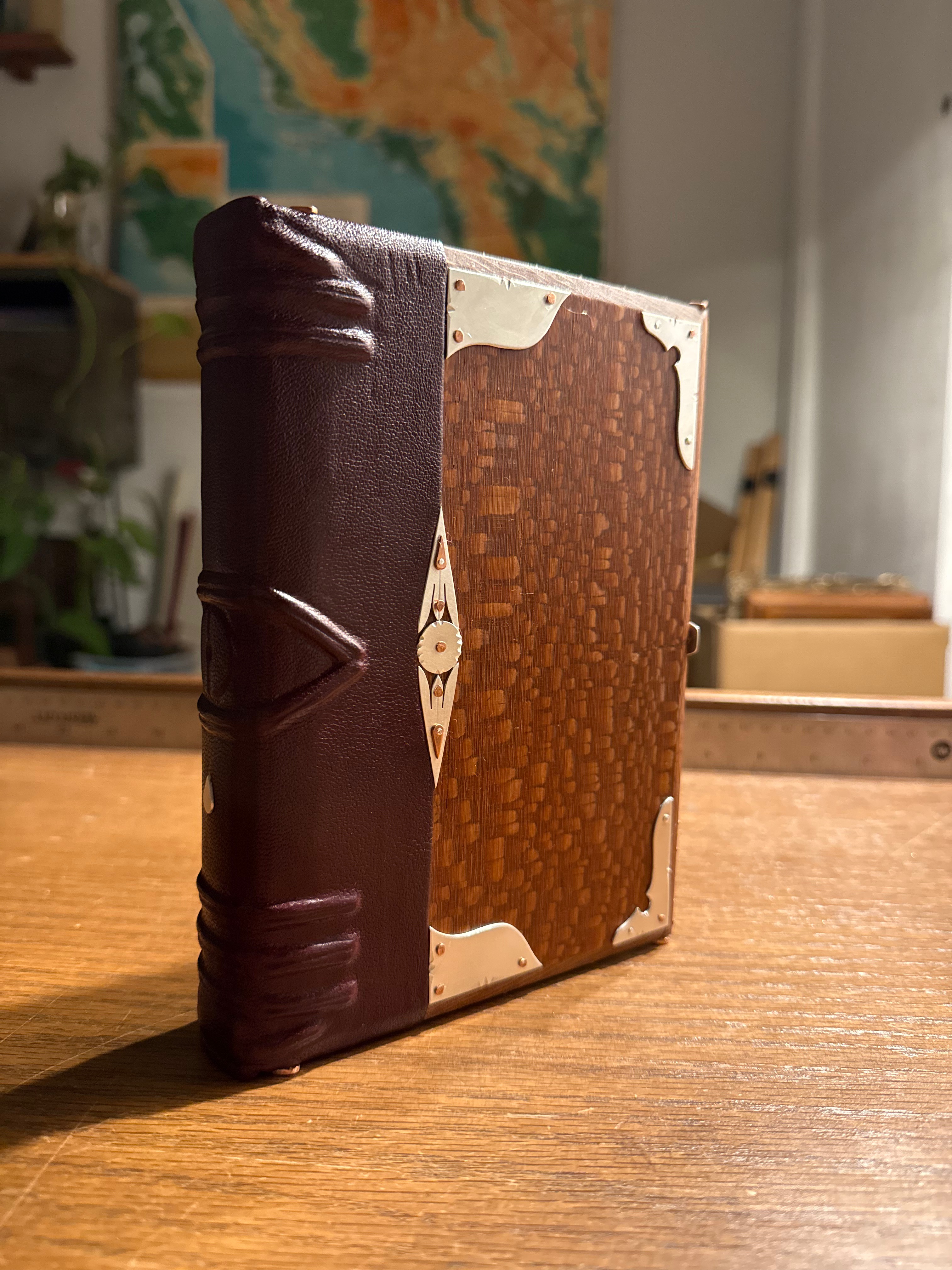 In December 2025, I primarily focused on my protea wood book that I was binding for detailing the Shards of Sense. I wanted a book that felt representative of where I was at the time with the project, reflecting the themes of its history as well as myself. Maybe it will be a sort of living document that changes over time. The story of this project goes back and forth through time, so who knows how it will turn out. I am still bouncing around with ideas for a title (I love titling things).