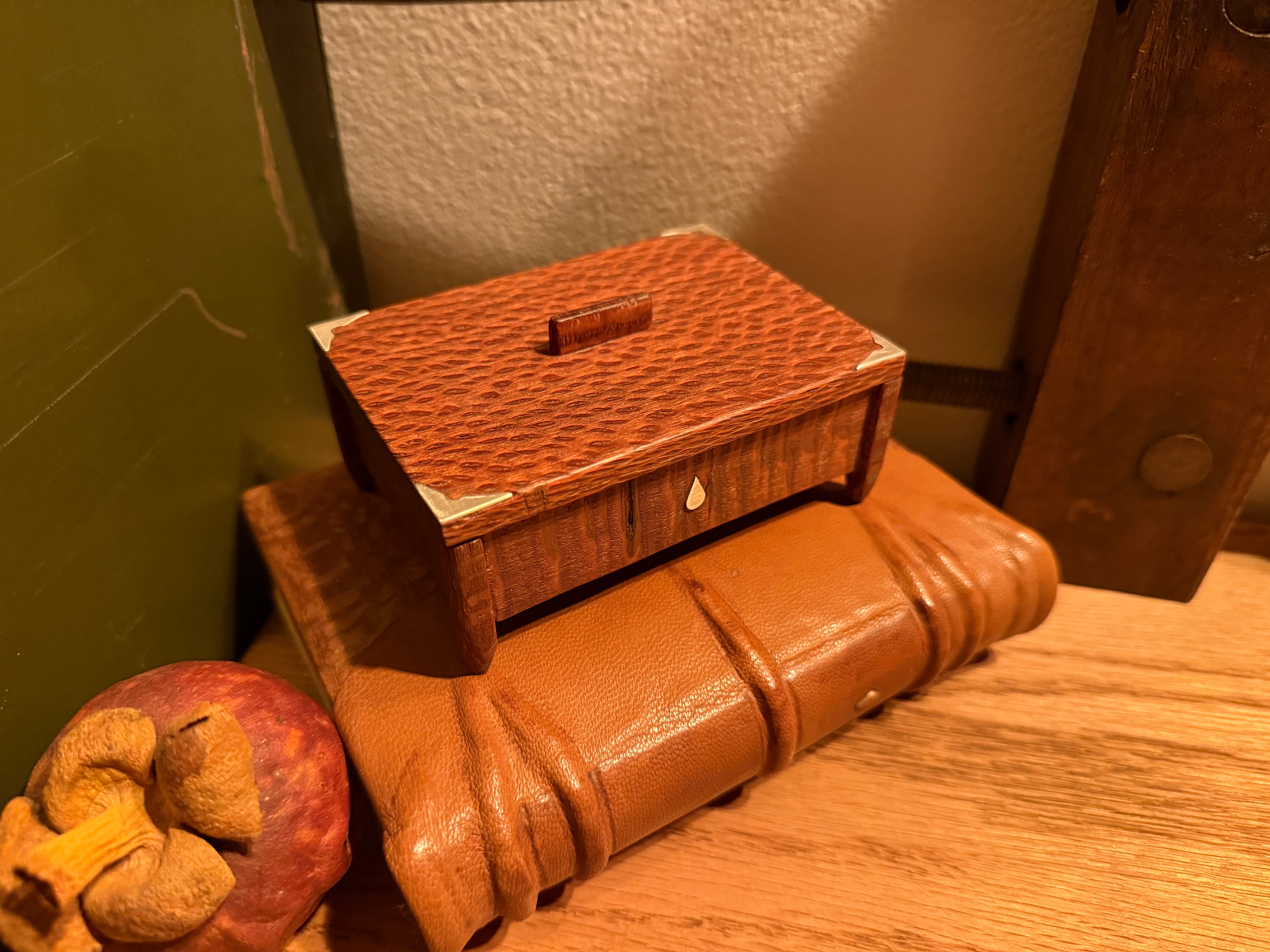One of my other projects that I was working on was a small protea wood box, because I had simply wanted to make one for a long time and got inspired to do so while inlaying sterling silver tear drops into some wood linings for silver jewelry boxes I found online.