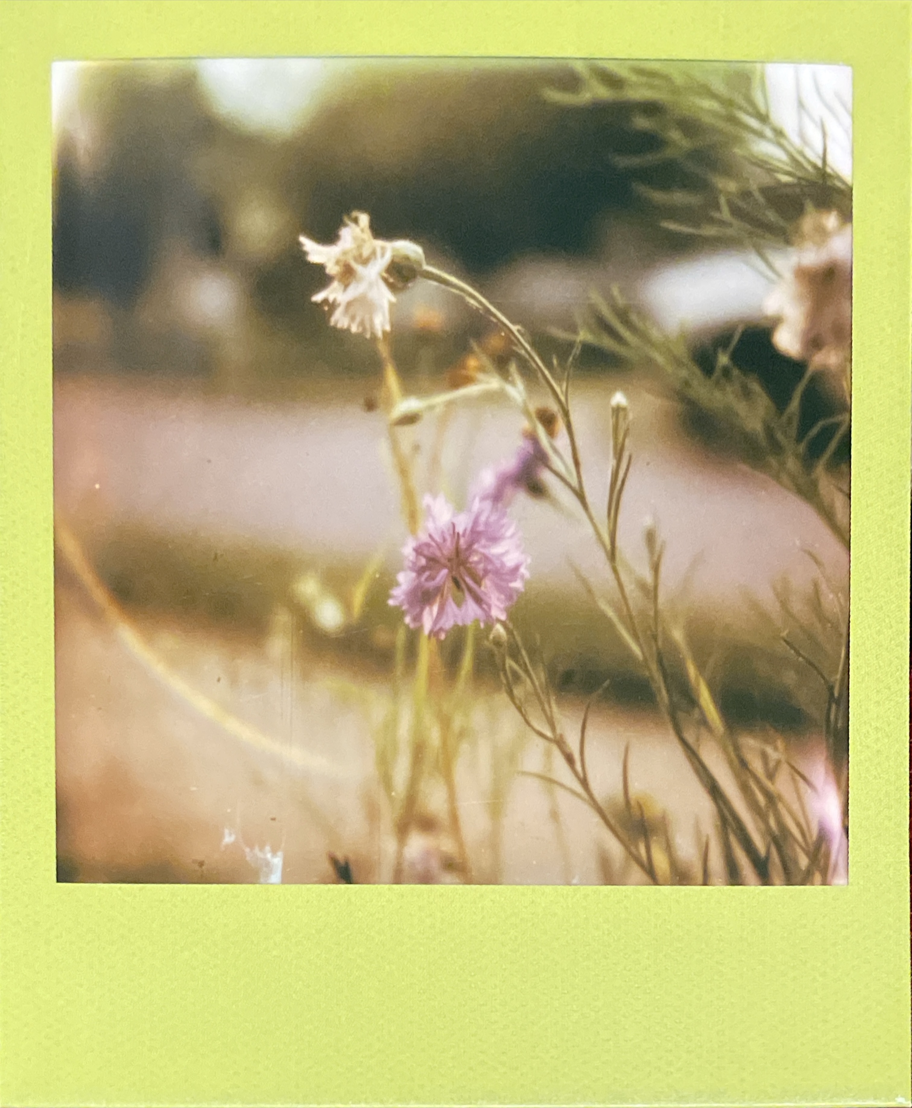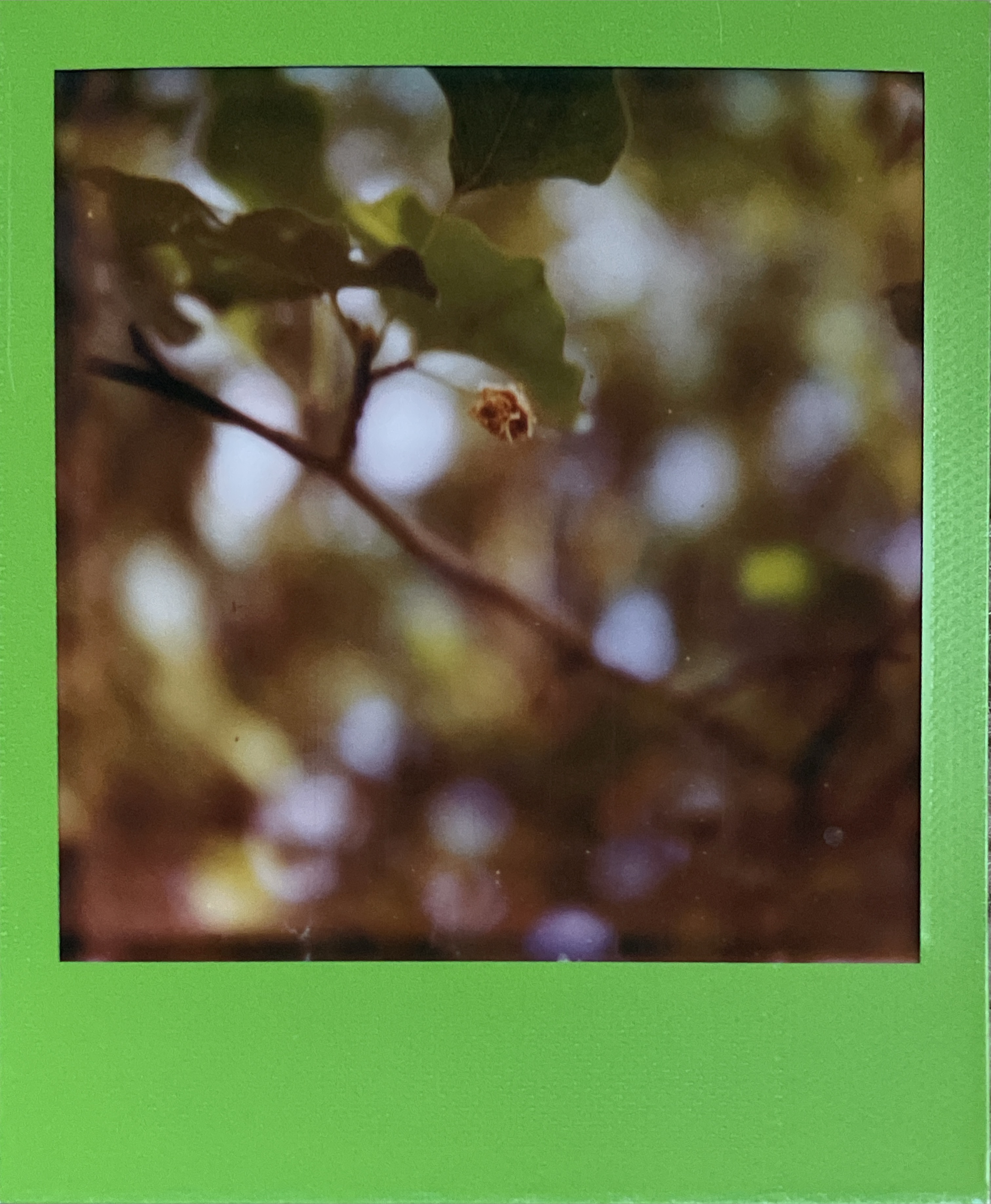I believe film, particularly instant film, captures a moment more honestly and emotionally than digital photography methods; however, I do use digital photography where it is more appropriate. With instant film, you can touch a moment and continue to hold it from the moment you press the shutter button. You are closer to breeze combing grass blades and trickling through the leaves. Light and temperature are pulled into the image, and depending on the speed of your capture, the gentlest of movement could preserve a completely different frame of reference.