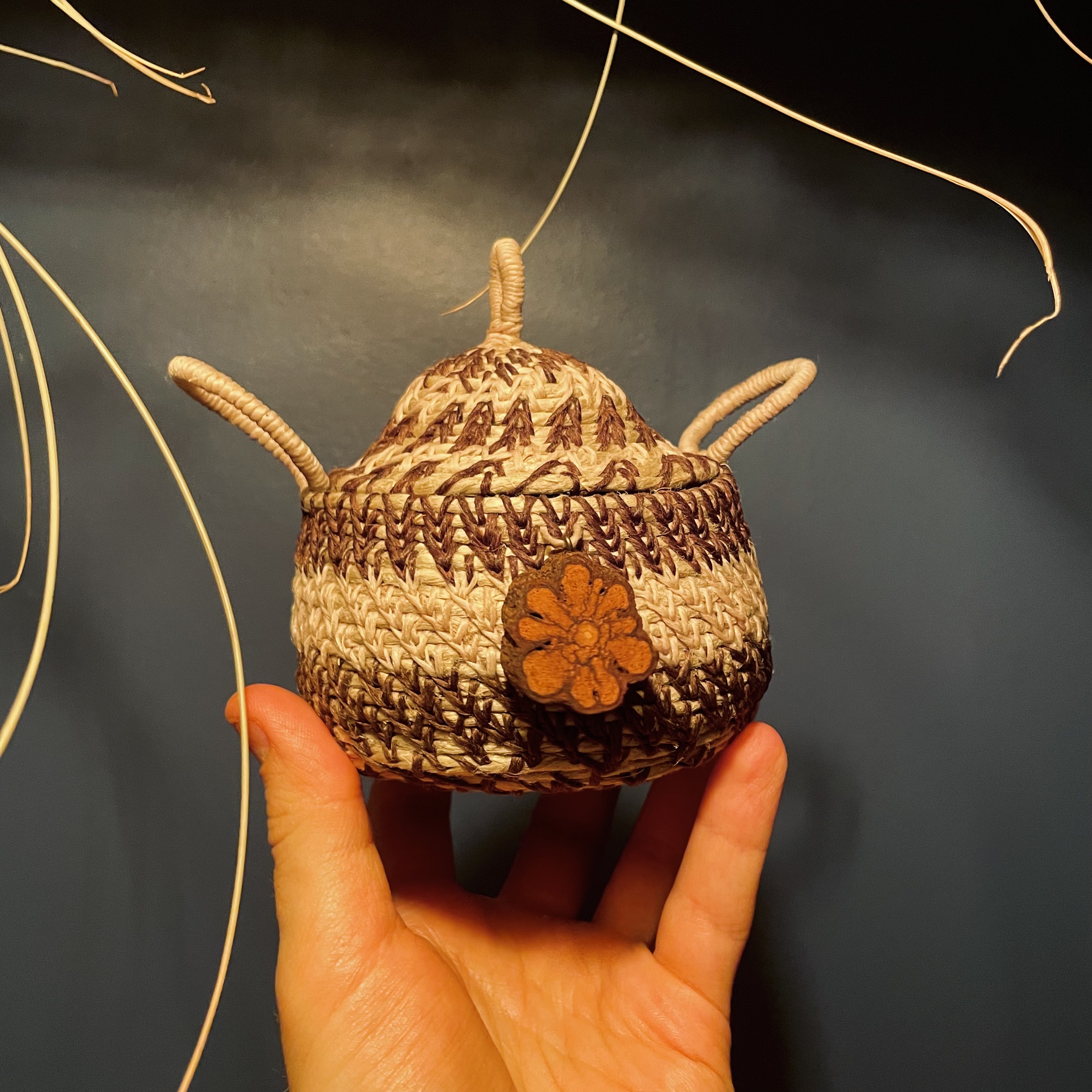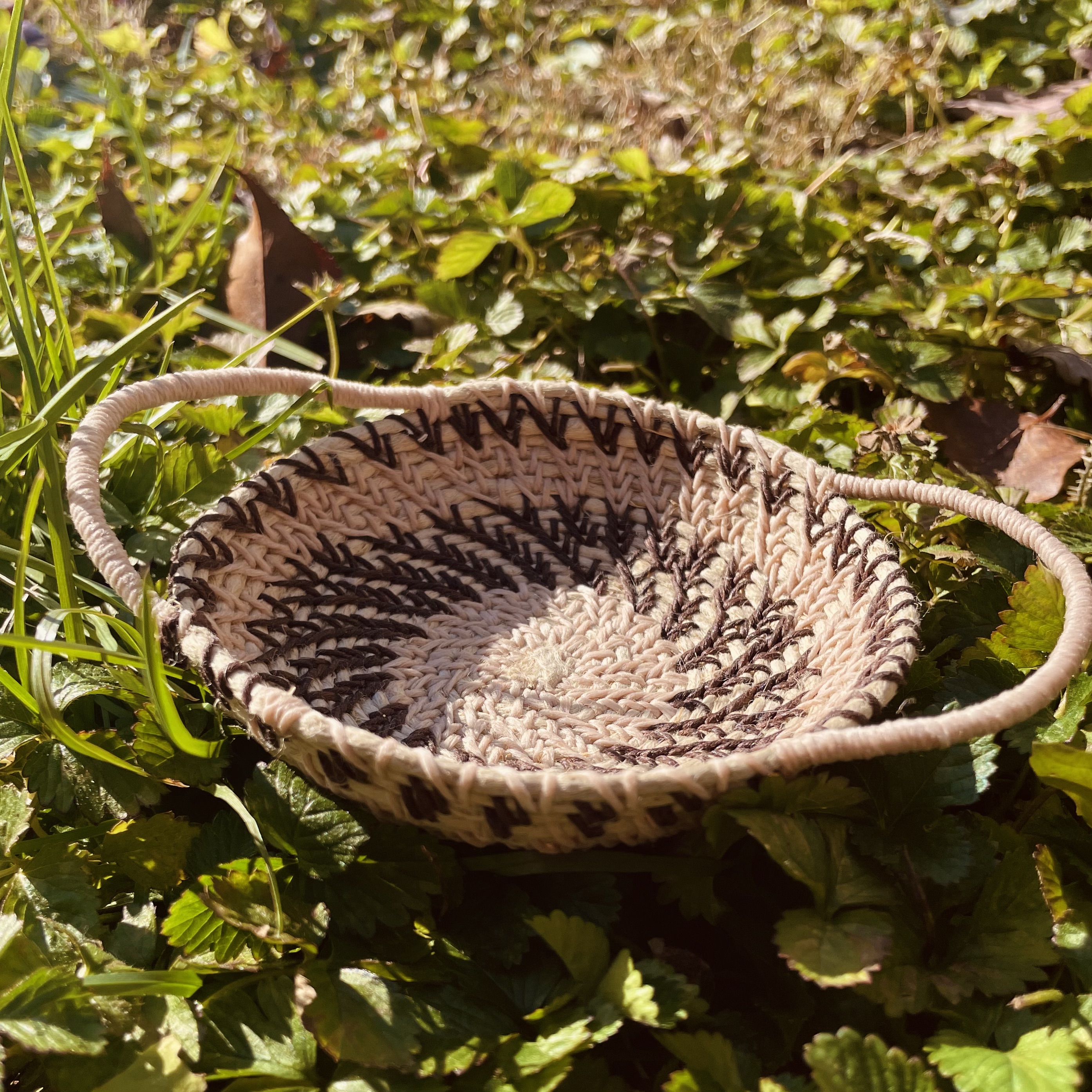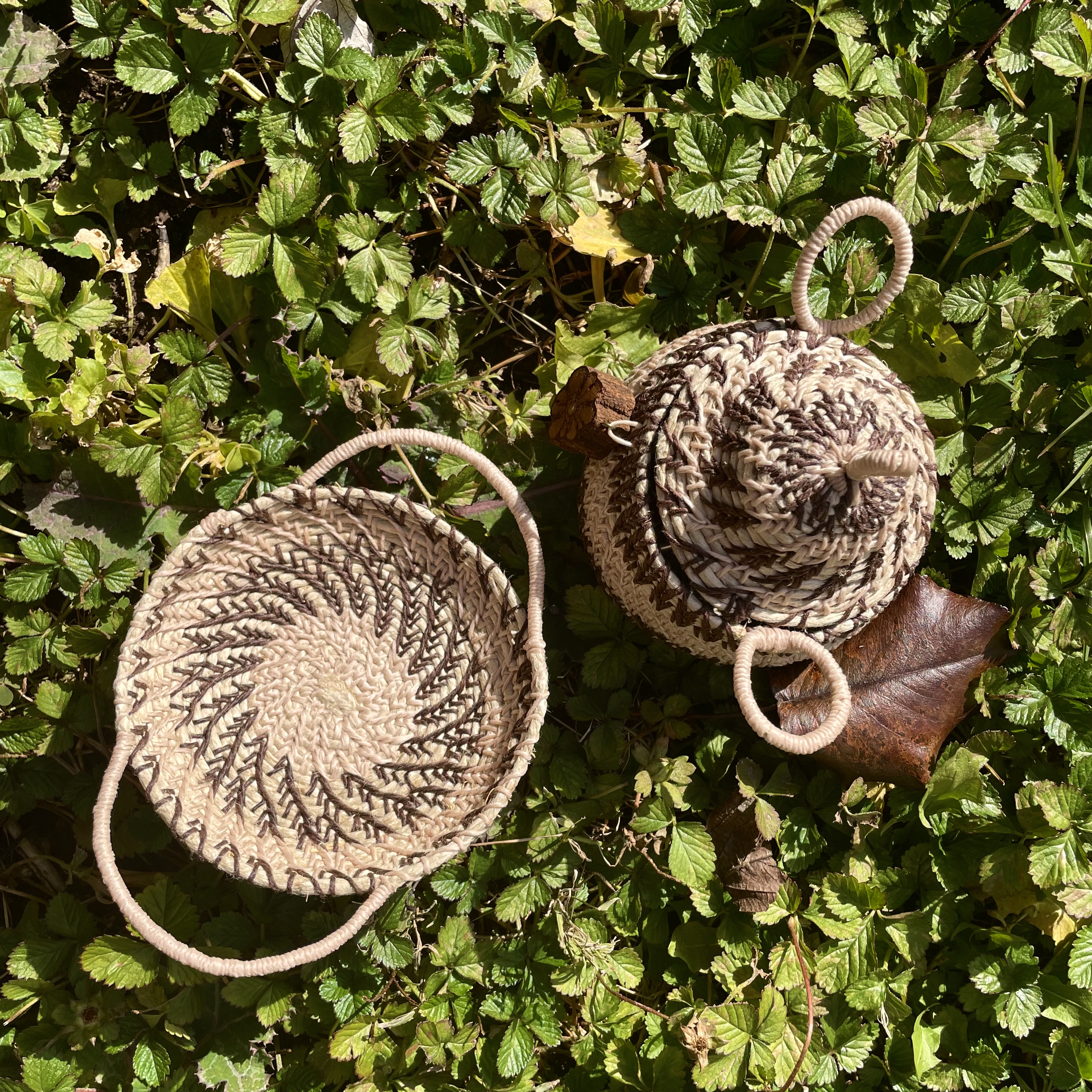 These baskets were made in 2021 a few months into moving into my home (which I bought that June/July). They were a dip into new art forms and creativity as I was exploring having my very first house, and creating a home out of it. I learned about this style and the meditative practice of making them, imbuing memories, emotions and thoughts into each weave.